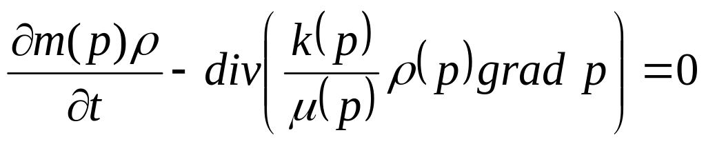 Если пласт считается деформируемым, пористость и проницаемость полагаются функциями давления, при этом изменение давление в пласте существенно, что вязкость тоже полагается функцией давления, то подставляя закон Дарси в уравнение неразрывности, получим