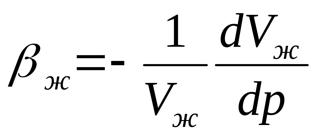 Коэффициент объемного сжатия жидкости βж равен отношению относительного изменения объема жидкости к изменению давления