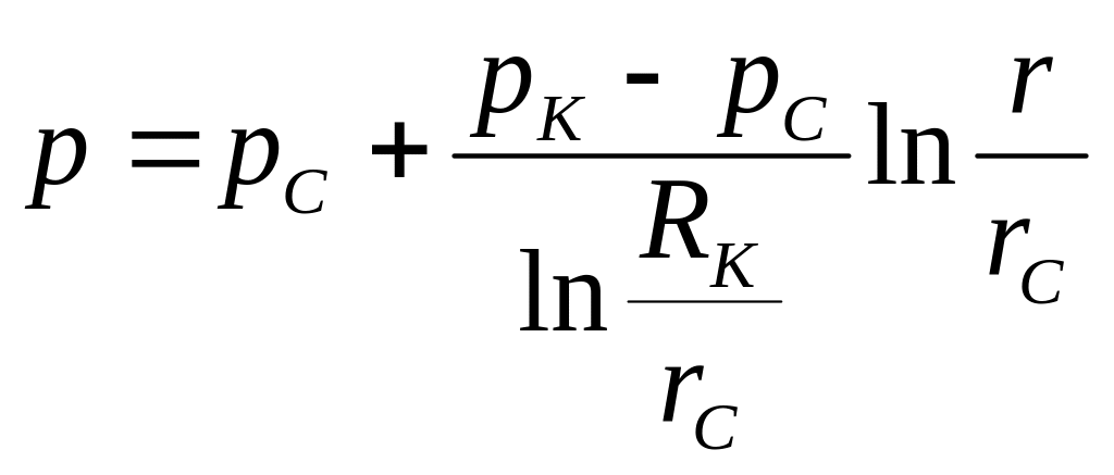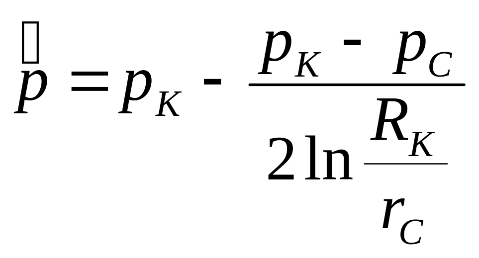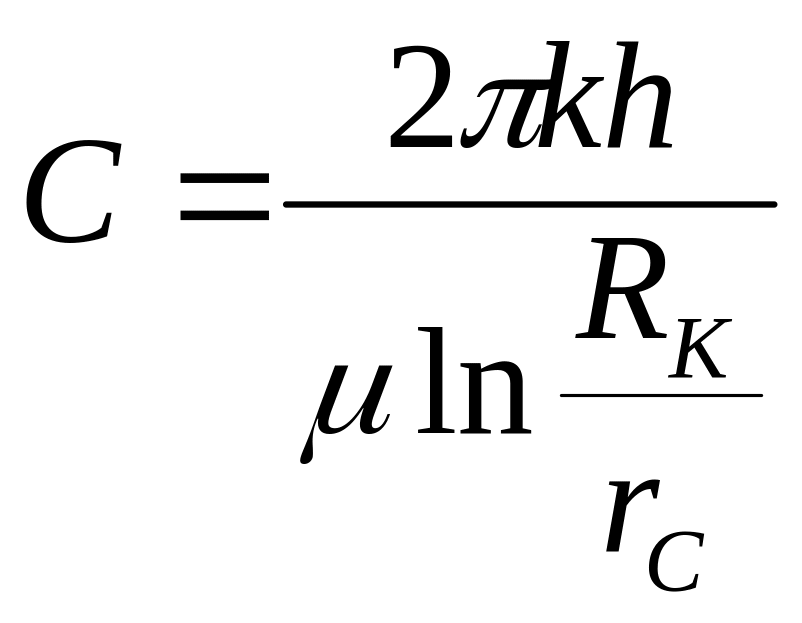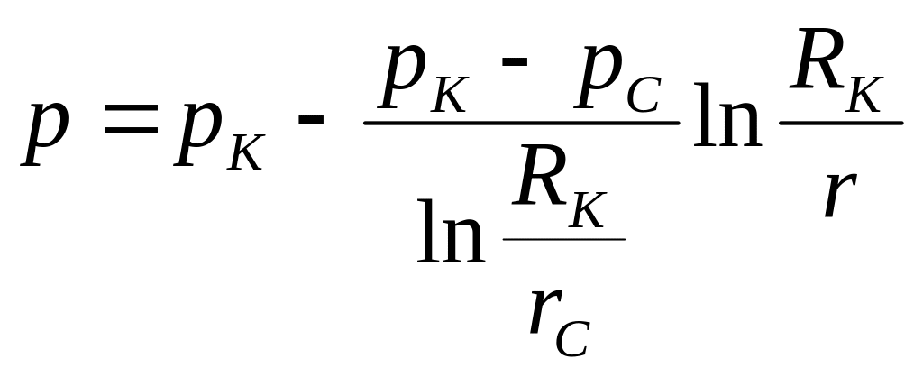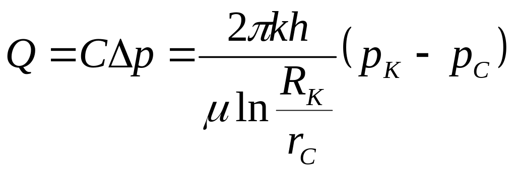 Пусть имеем в круговом пласте толщиной h и радиуса Rк центральную скважину радиуса rc, на забое которой поддерживается постоянное давление. На боковой поверхности r = Rк также поддерживается постоянное давление рк (рк > pс) и через нее происходит приток флюида, равный дебиту скважины. Поэтому фильтрация установившаяся, а боковая поверхность, через которую происходит приток, называется контуром питания.
