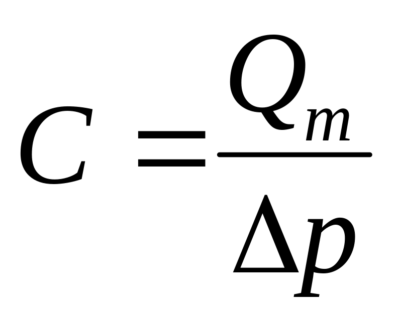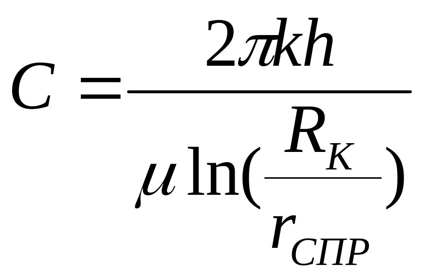 Вид индикаторной линии не зависит от геометрии потока и определяется только законом фильтрации. Отношение массового дебита скважины Qm к перепаду давления р называется коэффициентом продуктивности скважины С.