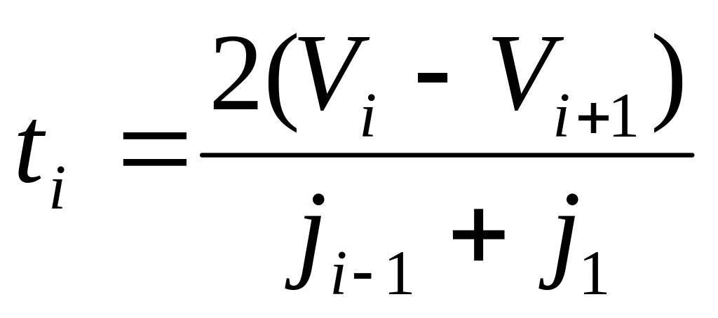 Весь диапазон скоростей АТС разбивают на n интервалов (n=10…15). Границы интервалов соответствуют определённым значениям скорости Vi и ускорения ji.