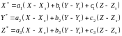 Xs, Уs, Zs - координаты точки S в системе OXYZ.