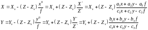 Решим полученные выражения относительно х0, у0, в результате получим формулы для определения координат горизонтального снимка х0, у0 если известны координаты наклонного снимка х, у.