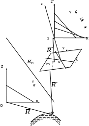 Координаты точки М измеряют в системе координат OXYZ. Чтобы перейти в систему координат Sxyz, необходимо применить формулы преобразования координат