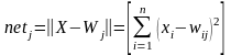 Зв'язки елемента прихованого прошарку визначають центр радіальної функції для даного прихованого елемента. Вхід для кожного елемента вибирається рівним евклідовій нормі: