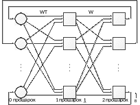 Прошарок 0 не робить обчислень і не має пам'яті. Він є лише засобом розподілу вихідних сигналів прошарку 2 до елементів матриці WT.