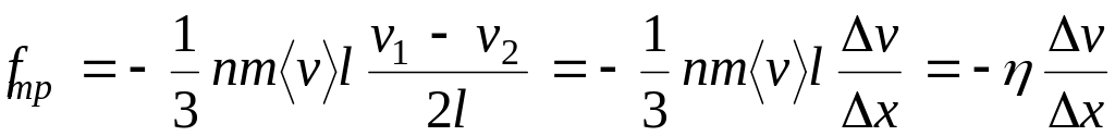 Очевидно, что при отсутствии взаимодействия между слоями газа и между газом и пластинкой, каждый слой мог бы двигаться с произвольной скоростью, независимо от других. В действительности же распределение скоростей v(x) слоев газа от их расстояния до пластинки устанавливается в силу наличия вязкости, т.е. сил внутреннего трения в газе.