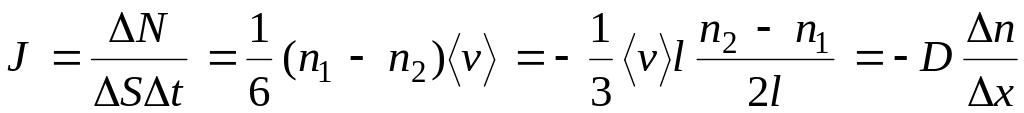 При наличии градиента концентрации хаотическое движение будет способствовать ее выравниванию, т.е. возникает поток молекул примеси, направленный от мест с меньшей к местам с большей концентрацией. Этот диффузионный поток тем больше, чем выше градиент конц-ции.