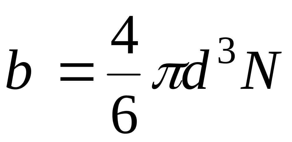 Поправка на недоступный объем (непроницаемость молекул). Молекула идеального газа может находиться в любой точке занимаемого им объема (доступен весь объем). Молекула реального газа не может находиться в тех местах сосуда, где расположены остальные N-1 молекул, и ей доступна лишь часть всего объема, равная V-b.