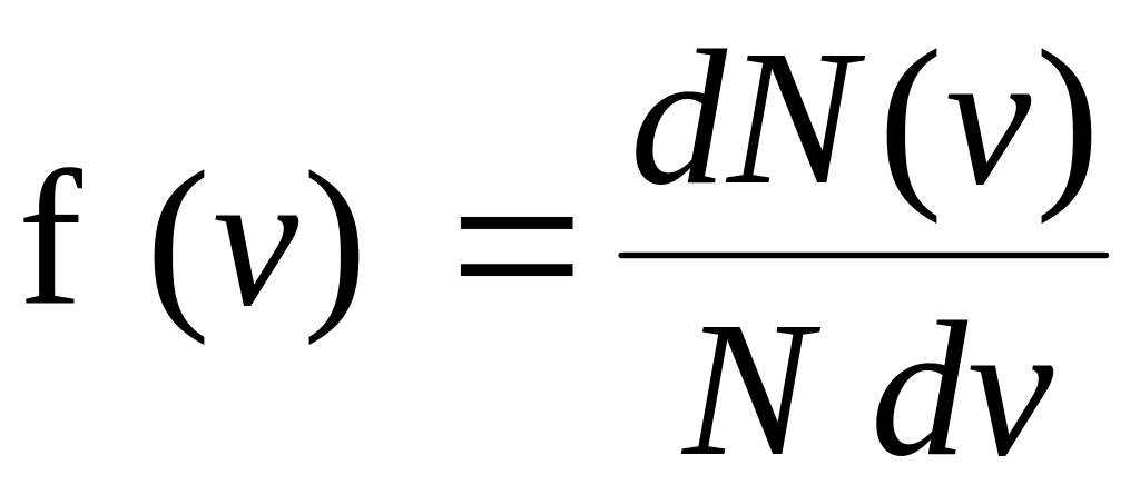 Закон Максвелла описывается функцией f(v) распределения молекул по скоростям. Если разбить диапазон скоростей молекул на малые интервалы, равные dv, то на каждый интервал скорости будет приходиться некоторое число молекул dN(v), имеющих скорость, заключенную в этом интервале.