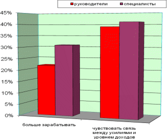 Согласно полученным данным, немногим более 40 % персонала чувствуют связь между своими усилиями и уровнем дохода.