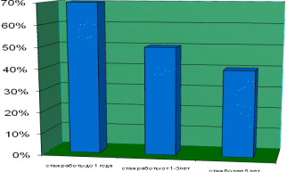 Так, если принять во внимание стаж работы в компании, оказывается, что среди сотрудников первого года работы «не выросших» на 30 % больше, чем среди опытного персонала.