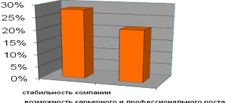 Вместе с тем еще одним фактором является стабильность компании. Около 29 людей, выбирая paботу ориентируются именно на стабильность организации.