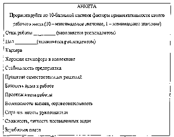 Первое анкетирование было проведено в январе 2012 года. С помощью анкеты «Приоритеты привлекательности рабочего места» (рис. 10) мы смогли определить текущее состояние системы мотивации персонала.