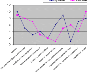 Так, на рисунке 11 отражены проранжированные факторы которые заставляют работников обоих полов продолжать работать на данном предприятии.