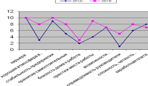 Таблица 5. Приоритеты привлекательности рабочего места у работников розничной торговли бытовой химии с различным стажем работы в 2012-2013 годах (средний балл)