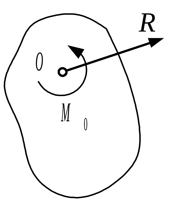 а) R≠0, МO=0. В этом случае система, что сразу видно, приводится к равнодействующей R, проходящей через центр О;