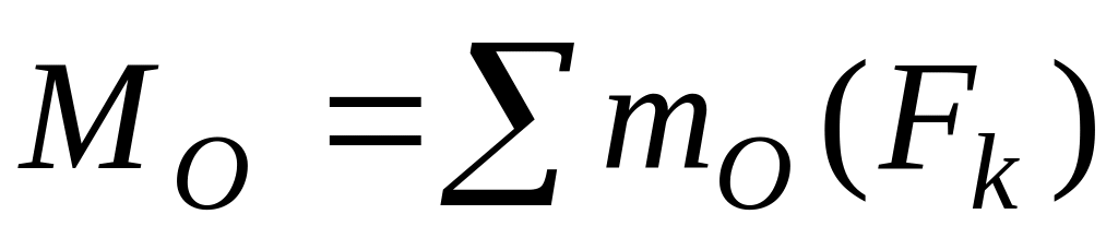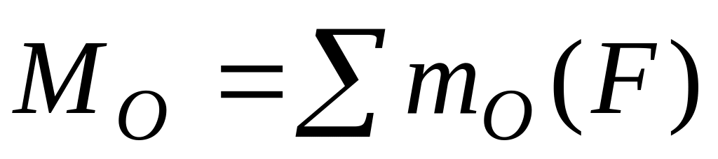 MO, но сила и пара лежат в данном случае в одной плоскости – в плоскости действия сил (рис. 10, а, где пара изображена дуговой стрелкой). Значения главного вектора и главного момента МO определяются формулами |