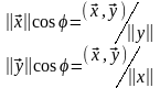 Зримо, этот угол может быть представлен в пространстве геометрических векторов при n = 2, n = 3. Для проекции вектора на и обратно имеем: