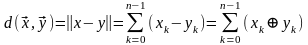 Можно видеть, что норма двоичного вектора определяется количеством содержащихся в нем 1. Эту норму называют также весом вектора W. Расстояние в пространстве Хемминга: