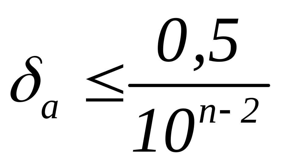 Для відносної похибки наближеного числа, що має n вірних знаків, використовуємо формулу