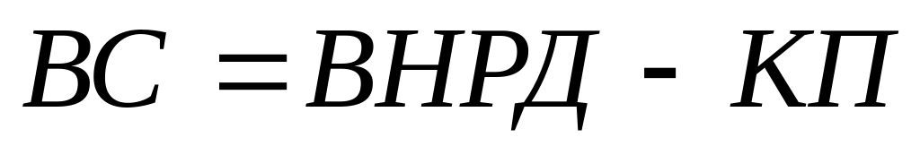 На стадии использования товаров и услуг ВВП рассчитывается как сумма: - конечного потребления (КП); - валового накопления (ВН);