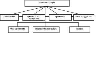 При такой структуре управления полноту ответственности берет на себя линейный менеджер, руководящий огромным коллективом. При разработке решений, программ, планов ему помогает специальный аппарат, состоящий из функциональных структур (отделов, бюро). При этом данный аппарат находится в подчинении главного линейного менеджера.