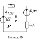 Определив эквивалентные ЭДС Еэ(р) и сопротивление Zэ(р) двух параллельных ветвей, упростим схему на рисунке 48 и получим схему на рисунке 49.