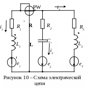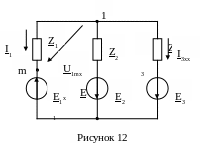 2. Заданная схема электрической цепи с изображением всех параметров, ЭДС и токов в символической форме показана на рисунке 11. Запишем для этой схемы систему уравнений по первому и второму законам Кирхгофа: