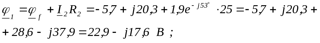 8. Построить топографическую диаграмму напряжений, совмещенную с векторной диаграммой токов. Заземлим узел 2, то есть присвоим ему потенциал, равный нулю. Рассчитываются потенциалы всех точек электрической цепи (обозначены на рисунке 14).