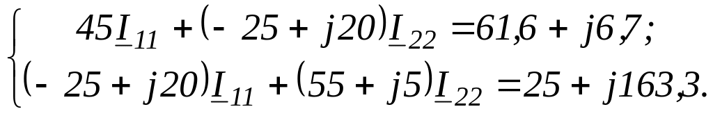 4. Определяем комплексы действующих значений токов I11 и I22 в ветвях двумя методами: методом контурных токов и методом двух узлов.