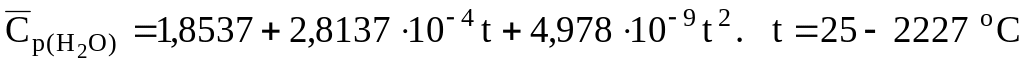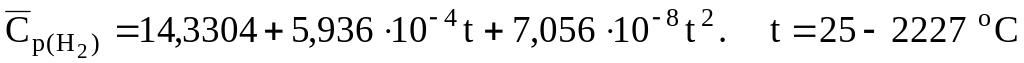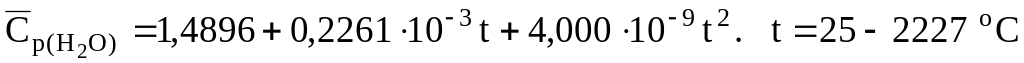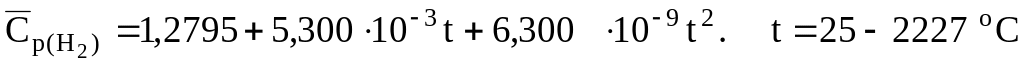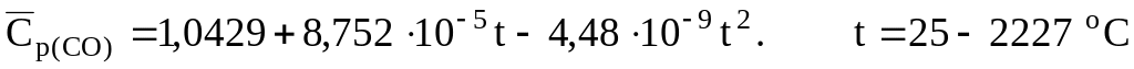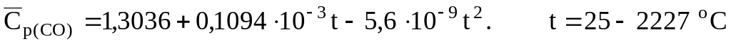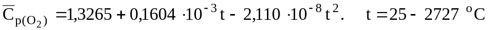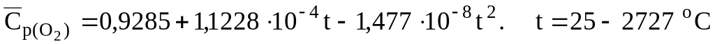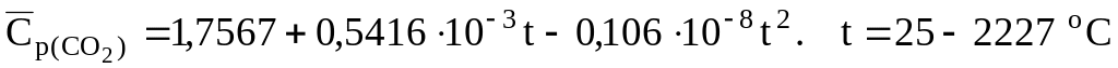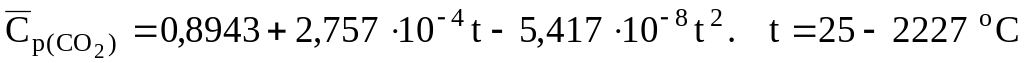 Уравнения для расчета объемных средних теплоемкостей некоторых газообразных веществ, кДж/(м3К) [6]: