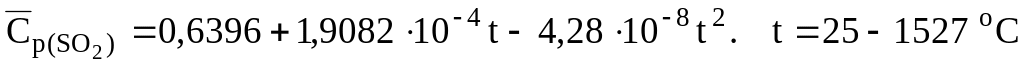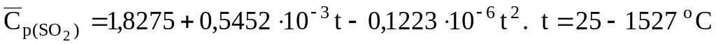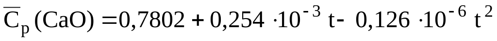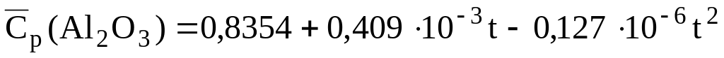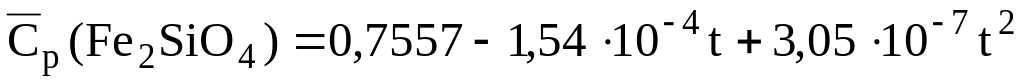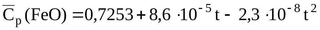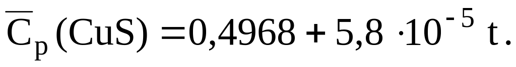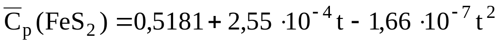 Уравнения для расчета массовых средних теплоемкостей некоторых сульфидов и оксидов, кДж/(кгК) [6]: