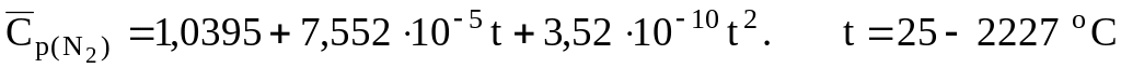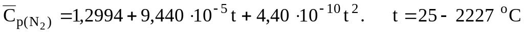 Уравнения для расчета массовых средних теплоемкостей некоторых газообразных веществ, кДж/(кгК):