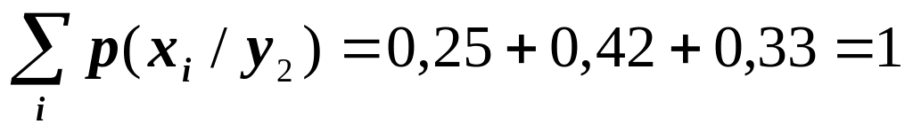 Для матриці умовних ймовірностей p(xi/yj) повинна виконуватися умова нормування