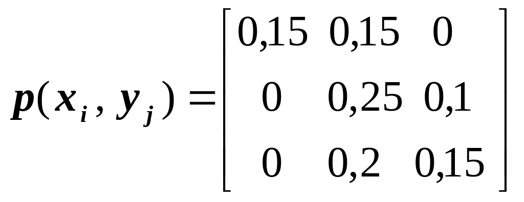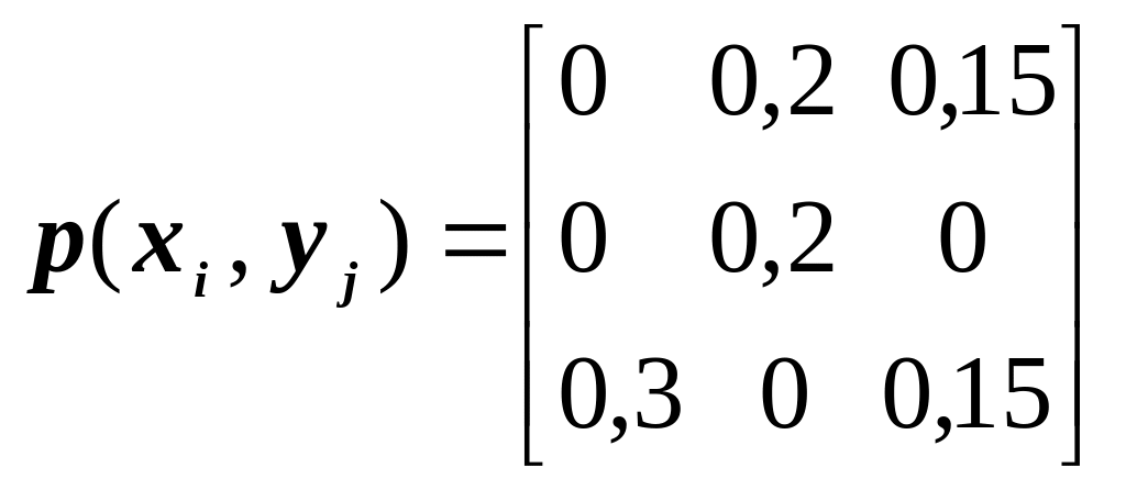 Безумовний закон розподілу p(xi) знаходимо, виконавши в матриці сумісних ймовірностей p(xi, yj) згортку за j: