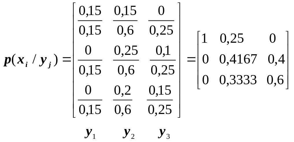 Отже, матриця умовних ймовірностей p(xi/yj) знаходиться так: