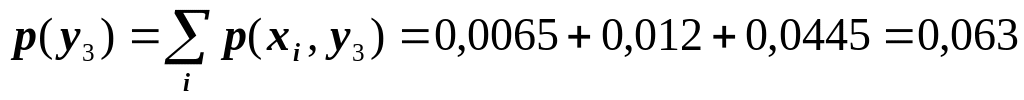 p(y2)= 0,15+0,25+0,2=0,6, j=2;