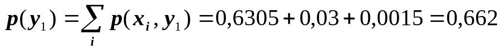 p(y1)+ p(y2)+ p(y3)=0,662+0,275+0,063=1.