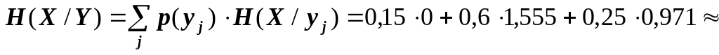 Виходячи з безумовного закону розподілу д. в. в. Y та знайдених часткових умовних ентропій H(X/yj), відшукуємо їх математичне сподівання – загальну умовну ентропію