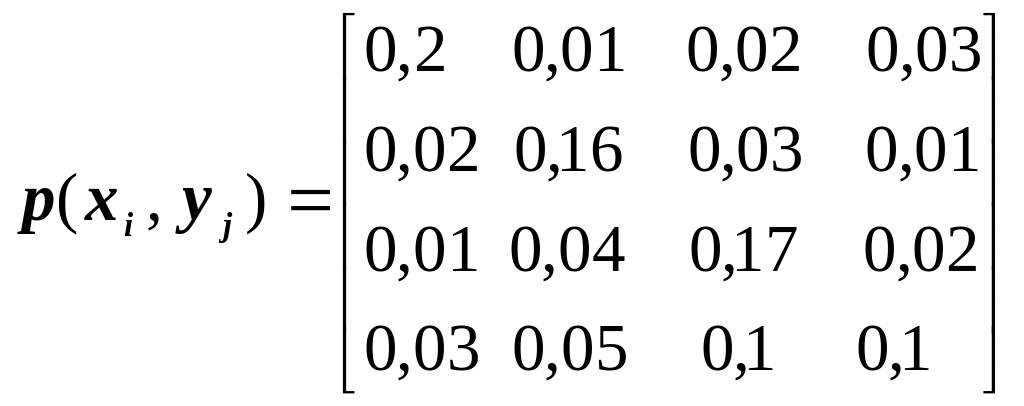 Виконавши в матриці сумісних ймовірностей pij= p(x, y) згортку за i, отримаємо приблизний безумовний розподіл д. в. в. Y: