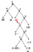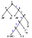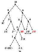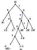 Процес декодування ілюструється таблицею 1, відповідні зміни кодового дерева – рис. 1.