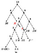 Закодувати повідомлення AABCDAACCCCDBB за адаптивним алгоритмом Хаффмена. Обчислити довжину у бітах стиснутого повідомлення і його ASCII+-коду.