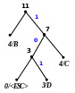 Приклад 2 Розпакувати повідомлення ‘B’0‘D’00‘C’11111 110101011011110100101, закодоване за адаптивним алгоритмом Хаффмена. Обчислити довжину стиснутого і нестиснутого повідомлення у бітах.