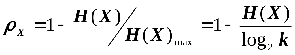 де H(X) - ентропія джерела повідомлень; H(X)max=log2k - максимально досяжна ентропія даного джерела.