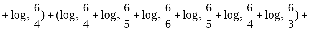 HX1=HX2=log26=1+log231+1,5852,585 (біт/сим).