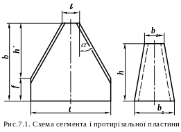 m – висота ділянки сегмента, що виключена з роботи, мм.