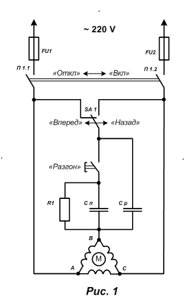 С п - С р - рабочий конденсатор; пусковой конденсатор; П1 - пакетный выключатель