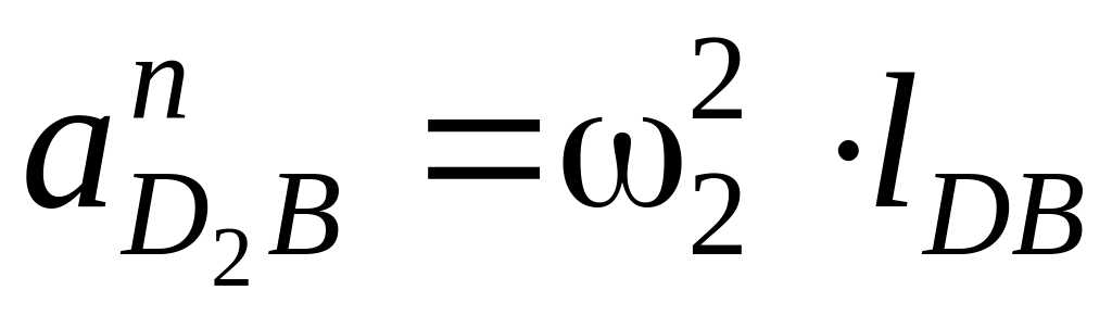 Определим ускорения в группе Ассура 2,3. Начнём с точки D2. Как видно по табл. 1 (строка 2а)