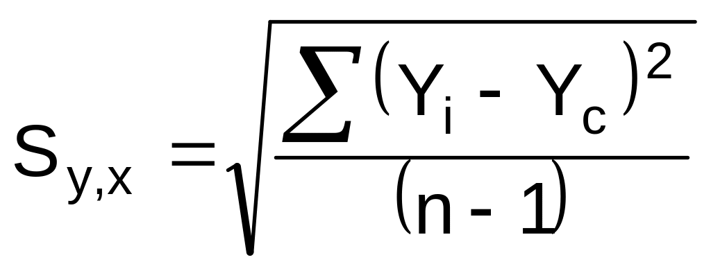где Yi – значение функции в i-й точке; Yc – расчетное значение зависимой переменной уравнения регрессии; N – число данных.